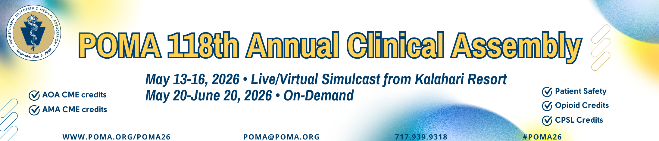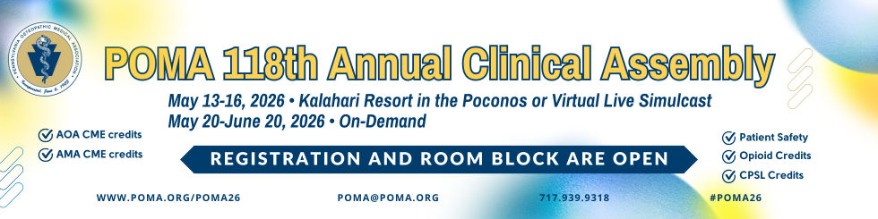POMA - YOUR HOME FOR OSTEOPATHIC MEDICINEPOMA’s mission is to promote the distinctive philosophy and practice of osteopathic medicine for our patients, our members, and the communities we serve. The Pennsylvania Osteopathic Medical Association (POMA) proudly represents its professional osteopathic family since 1903. Our family includes more than 12,300 osteopathic physicians, residents & interns and 2,600 osteopathic students. Through the promotion of public health and encouraging scientific research we aim to continue to advance the science and art of osteopathic medicine. As the osteopathic medical field continues to grow, we remain your home for everything osteopathic medicine.